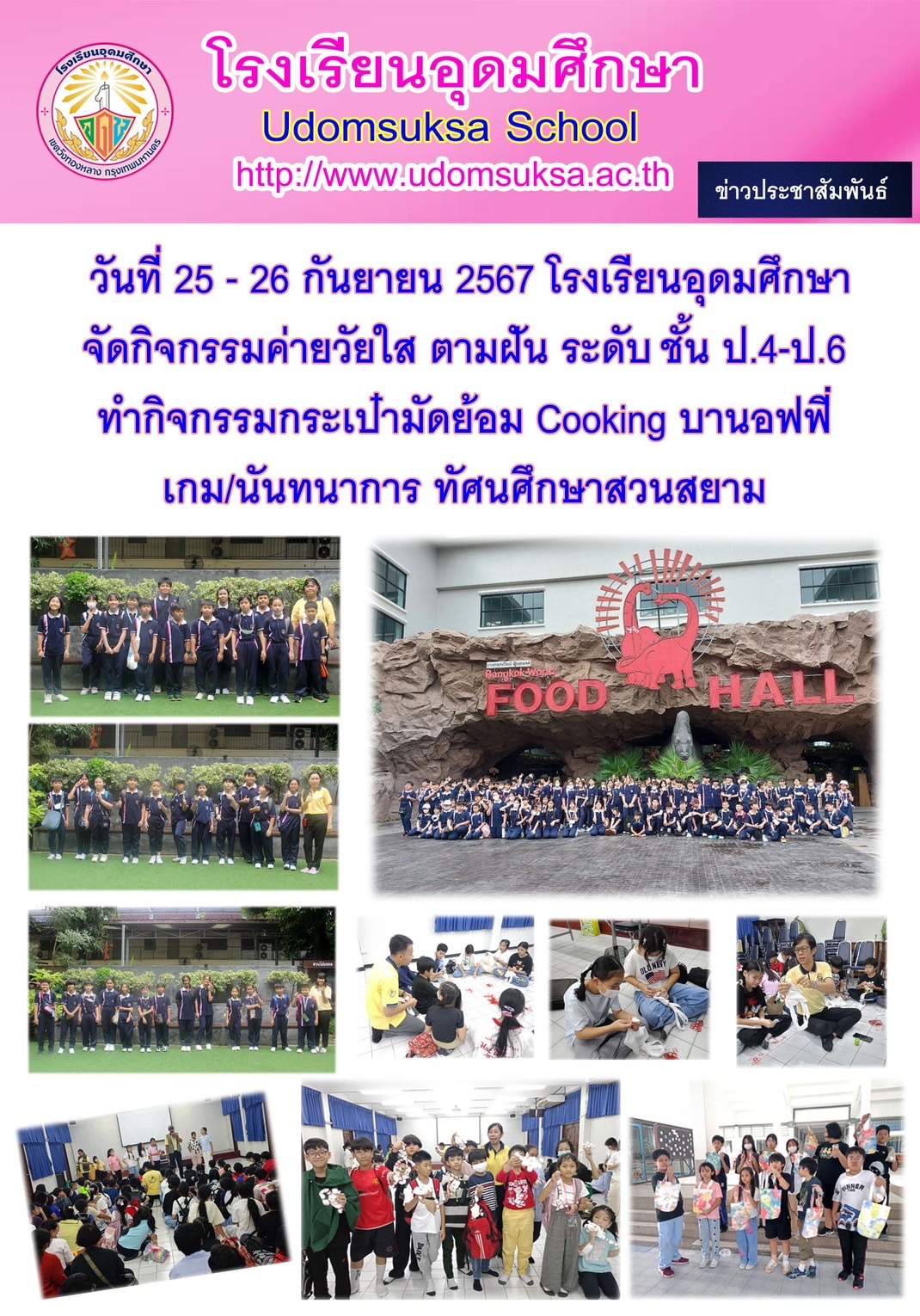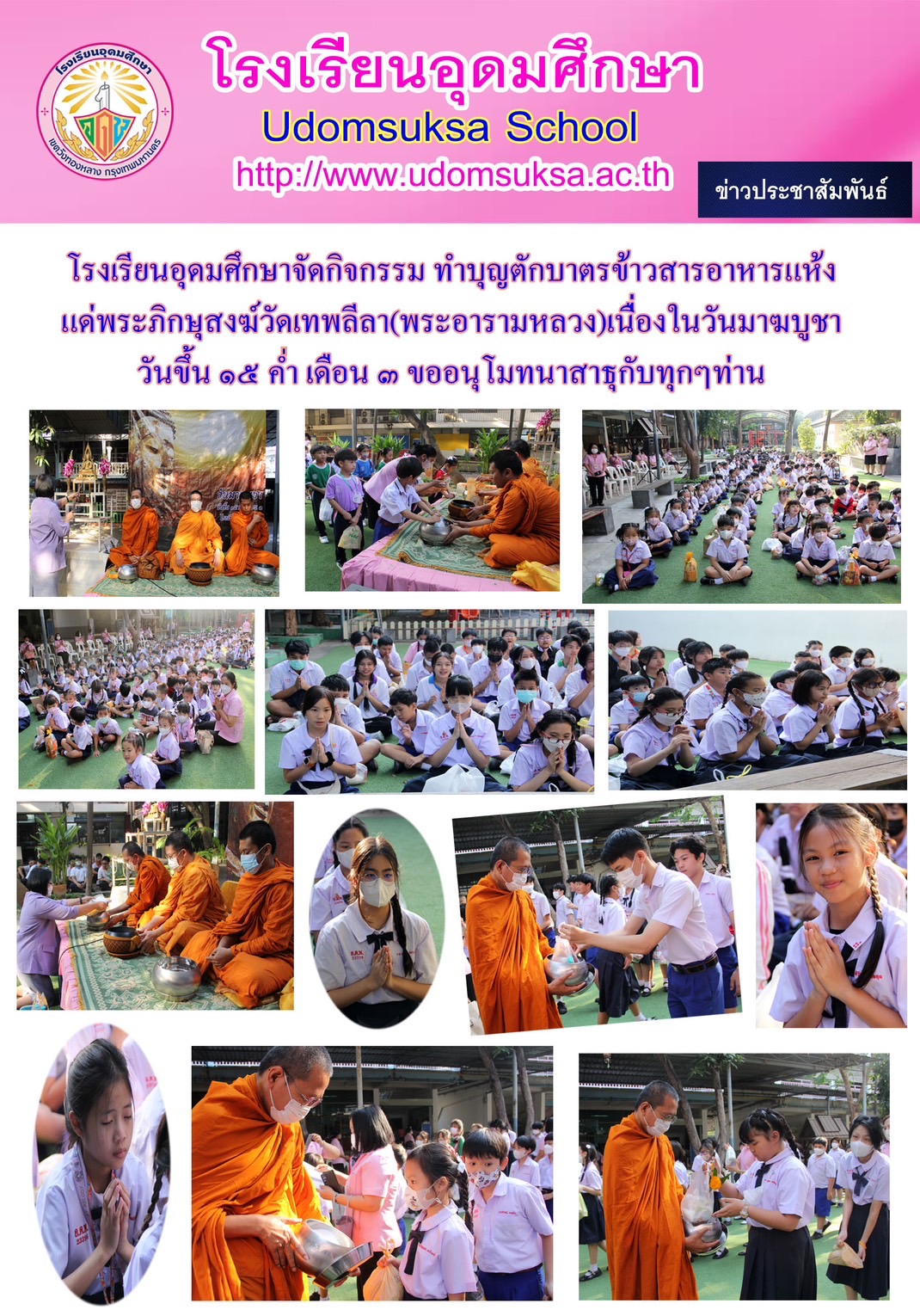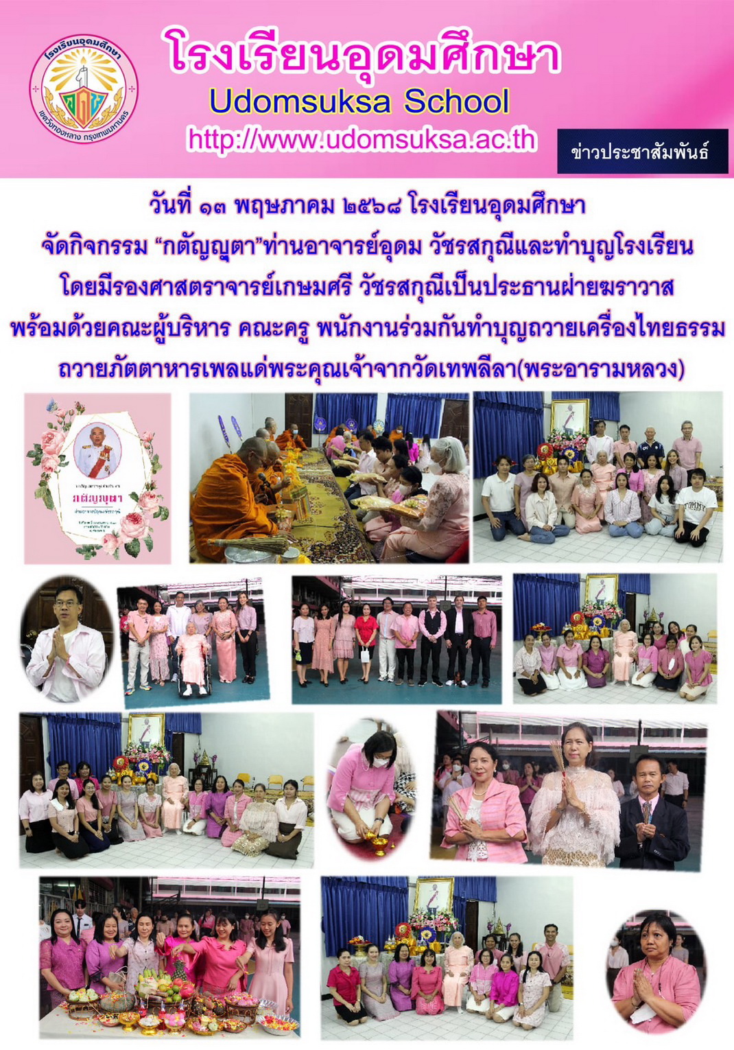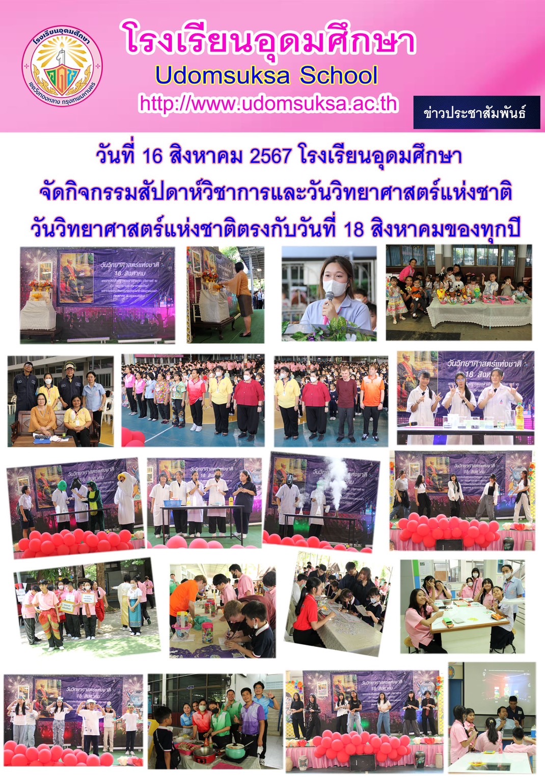 กิจกรรมประจำปีการศึกษา 2567 กิจกรรมกตัญญุตา ท่านอาจารย์อุดม วัชรสกุณี : 13 พ.ค. 68 ชมรมเต็มใจให้ บริจาคอุปกรณ์การเรียน ทุนการศึกษา ที่โรงเรียนบ้านเขาอีส้าน อ.ปากท่อ จ.ราชบุรี : 30 เม.ย. 68 สช. เข้าตรวจติดตามการใช้เงินอุดหนุน : 22 เม.ย. 68 กิจกรรมวันสงกรานต์ : 11 เม.ย. 68 หน่วยงานราชการ มาให้คำแนะนำด้านโภชนาการ : 13 ก.พ. 68 ทำบุญตักบาตรอาหารแห้งเนื่องในวันมาฆบูชา : 11 ก.พ. 68 นศท ชาย ชั้นปี 2 เข้าฝึกภาคสนามที่เขาชนไก่ : 7-9 ก.พ. 68 ค่ายลูกเสือ-เนตรนารีสามัญรุ่นใหญ่ : 4-6 ก.พ. 68 วันตรุษจีน : 27 ม.ค. 68 นศท ชาย ชั้นปี 3 เข้าฝึกภาคสนามที่เขาชนไก่ : 20-23 ม.ค. 68 นศท หญิง ชั้นปี 2 เข้าฝึกภาคสนามที่เขาชนไก่ : 18-20 ม.ค. 68 ร่วมงานวันพ่อขุนรามคำแหง : 17 ม.ค. 68 ลูกเสือ-เนตรนารี เรียนรู้การปฐมพยาบาล การทำ CPR : 15 ม.ค. 68 วันเด็กแห่งชาติ : 10 ม.ค. 68 วันเด็กแห่งชาติ : 10 ม.ค. 68 วันขึ้นปีใหม่ (มอบของขวัญแด่วินมอเตอร์ไซด์) : 26 ธ.ค. 67 วันขึ้นปีใหม่ (มอบของขวัญแด่ตำรวจจราจร) : 26 ธ.ค. 67 วันขึ้นปีใหม่ : 26 ธ.ค. 67 วันคริสต์มาส : 20 ธ.ค. 67 วันชาติและวันพ่อแห่งชาติ : 4 ธ.ค. 67 กีฬาสีอนุบาล : 29 พ.ย. 67 วันกีฬาสีประถม : 28 พ.ย. 67 วันกีฬาสีมัธยม : 27 พ.ย. 67 สอบธรรมะศึกษาชั้น ตรี โท เอก : 22 พ.ย. 67 วันลอยกระทง : 15 พ.ย. 67 นักเรียนป.6 ฉีดวัคซีนคอตีบ - บาดทะยัก (เข็มกระตุ้น) : 14 พ.ย. 67 วันปิยมหาราช : 23 ต.ค. 67 อบรมจริยธรรมครู : 8 ต.ค. 67 ค่ายระดับชั้นมัธยม : 25-26 ก.ย. 67 ค่ายระดับชั้นป.4-6 : 25-26 ก.ย. 67 ค่ายระดับชั้นป.1-3 : 23-24 ก.ย. 67 ค่ายระดับชั้นอนุบาล : 23-24 ก.ย. 67 นักศึกษาวิชาทหาร มอบสิ่งของช่วยผู้ประสบภัยน้ำท่วม : 28 ส.ค. 67 นักเรียนชั้นม.5 ทัศนศึกษา ณ Museum Siam : 22 ส.ค. 67 นักเรียนชั้นม.4 ทัศนศึกษา ณ Museum Siam : 20 ส.ค. 67 สัปดาห์วิทยาศาสตร์แห่งชาติ : 16 ส.ค. 67 สัปดาห์วิทยาศาสตร์แห่งชาติ : 16 ส.ค. 67 นักเรียนชั้นป.3 ทัศนศึกษา ณ พิพิธภัณฑ์ตราไปรษณียากร สามเสนใน : 14 ส.ค. 67 นักเรียนชั้นม.6 ทัศนศึกษา ณ วัดพระเชตุพนวิมลมังคลาราม (วัดโพธิ์) : 13 ส.ค. 67 นักเรียนชั้นม.3 ทัศนศึกษา ณ พิพิธภัณฑสถานแห่งชาติธรณีวิทยาเฉลิมพระเกียรติ : 9 ส.ค. 67 วันเฉลิมพระชนมพรรษา สมเด็จพระนางเจ้าสิริกิติ์ฯ ณ สำนักงานเขตวังทองหลาง : 8 ส.ค. 67 วันเฉลิมพระชนมพรรษา สมเด็จพระนางเจ้าสิริกิติ์ฯ : 8 ส.ค. 67 นักเรียนชั้นม.2 ทัศนศึกษา ณ พิพิธภัณฑ์พระราม ๙ : 7 ส.ค. 67 นักเรียนชั้นป.2 ทัศนศึกษา ณ อุทยานผีเสื้อและแมลง กรุงเทพมหานคร : 6 ส.ค. 67 นักเรียนชั้นป.4 ทัศนศึกษา ณ พิพิธภัณฑ์วิทยาศาสตร์ คลองห้า : 2 ส.ค. 67 นักเรียนชั้นป.6 ทัศนศึกษา ณ ศูนย์วิทยาศาสตร์เพื่อการศึกษา (ท้องฟ้าจำลอง กรุงเทพ) : 1 ส.ค. 67 นักเรียนชั้นม.1 ทัศนศึกษา ณ พิพิธภัณฑ์วิทยาศาสตร์ คลองห้า : 31 ก.ค. 67 นักเรียนชั้นป.1 ทัศนศึกษา ณ พิพิธภัณฑ์เด็กกรุงเทพมหานคร : 30 ก.ค. 67 วันภาษาไทยแห่งชาติ : 26 ก.ค. 67 วันเฉลิมพระชนมพร