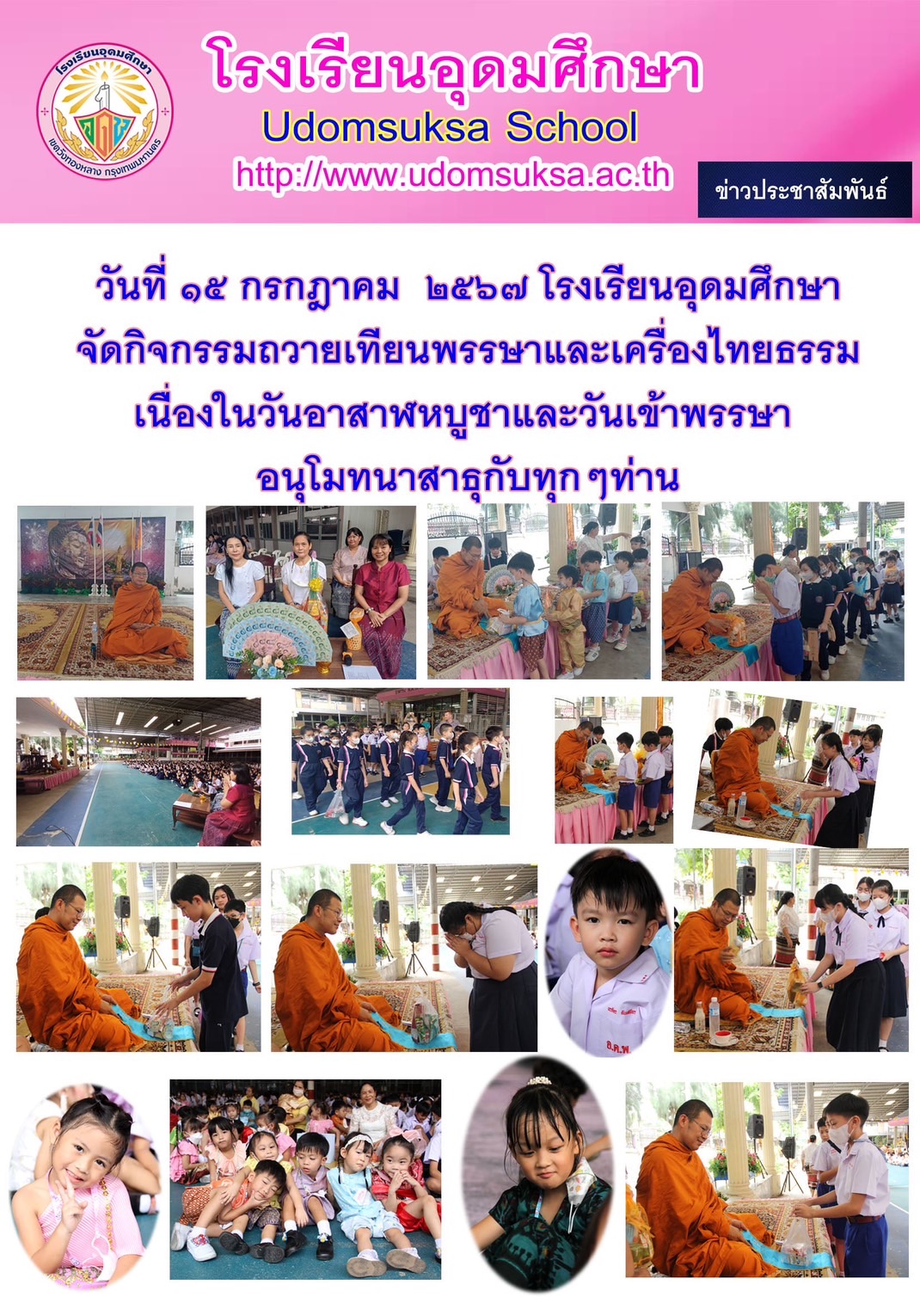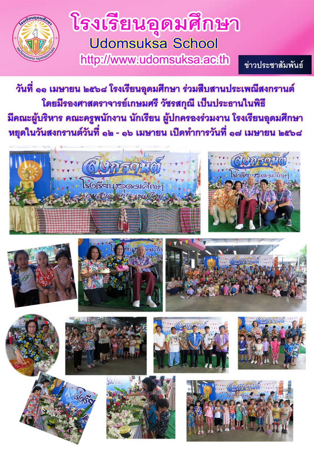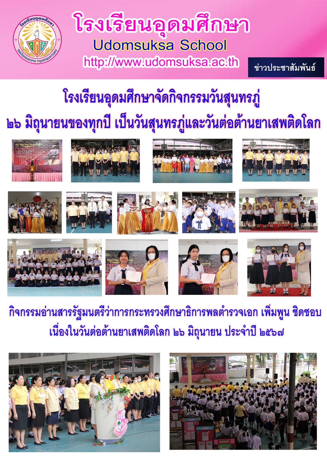 กิจกรรมประจำปีการศึกษา 2567 กิจกรรมกตัญญุตา ท่านอาจารย์อุดม วัชรสกุณี : 13 พ.ค. 68 ชมรมเต็มใจให้ บริจาคอุปกรณ์การเรียน ทุนการศึกษา ที่โรงเรียนบ้านเขาอีส้าน อ.ปากท่อ จ.ราชบุรี : 30 เม.ย. 68 สช. เข้าตรวจติดตามการใช้เงินอุดหนุน : 22 เม.ย. 68 กิจกรรมวันสงกรานต์ : 11 เม.ย. 68 หน่วยงานราชการ มาให้คำแนะนำด้านโภชนาการ : 13 ก.พ. 68 ทำบุญตักบาตรอาหารแห้งเนื่องในวันมาฆบูชา : 11 ก.พ. 68 นศท ชาย ชั้นปี 2 เข้าฝึกภาคสนามที่เขาชนไก่ : 7-9 ก.พ. 68 ค่ายลูกเสือ-เนตรนารีสามัญรุ่นใหญ่ : 4-6 ก.พ. 68 วันตรุษจีน : 27 ม.ค. 68 นศท ชาย ชั้นปี 3 เข้าฝึกภาคสนามที่เขาชนไก่ : 20-23 ม.ค. 68 นศท หญิง ชั้นปี 2 เข้าฝึกภาคสนามที่เขาชนไก่ : 18-20 ม.ค. 68 ร่วมงานวันพ่อขุนรามคำแหง : 17 ม.ค. 68 ลูกเสือ-เนตรนารี เรียนรู้การปฐมพยาบาล การทำ CPR : 15 ม.ค. 68 วันเด็กแห่งชาติ : 10 ม.ค. 68 วันเด็กแห่งชาติ : 10 ม.ค. 68 วันขึ้นปีใหม่ (มอบของขวัญแด่วินมอเตอร์ไซด์) : 26 ธ.ค. 67 วันขึ้นปีใหม่ (มอบของขวัญแด่ตำรวจจราจร) : 26 ธ.ค. 67 วันขึ้นปีใหม่ : 26 ธ.ค. 67 วันคริสต์มาส : 20 ธ.ค. 67 วันชาติและวันพ่อแห่งชาติ : 4 ธ.ค. 67 กีฬาสีอนุบาล : 29 พ.ย. 67 วันกีฬาสีประถม : 28 พ.ย. 67 วันกีฬาสีมัธยม : 27 พ.ย. 67 สอบธรรมะศึกษาชั้น ตรี โท เอก : 22 พ.ย. 67 วันลอยกระทง : 15 พ.ย. 67 นักเรียนป.6 ฉีดวัคซีนคอตีบ - บาดทะยัก (เข็มกระตุ้น) : 14 พ.ย. 67 วันปิยมหาราช : 23 ต.ค. 67 อบรมจริยธรรมครู : 8 ต.ค. 67 ค่ายระดับชั้นมัธยม : 25-26 ก.ย. 67 ค่ายระดับชั้นป.4-6 : 25-26 ก.ย. 67 ค่ายระดับชั้นป.1-3 : 23-24 ก.ย. 67 ค่ายระดับชั้นอนุบาล : 23-24 ก.ย. 67 นักศึกษาวิชาทหาร มอบสิ่งของช่วยผู้ประสบภัยน้ำท่วม : 28 ส.ค. 67 นักเรียนชั้นม.5 ทัศนศึกษา ณ Museum Siam : 22 ส.ค. 67 นักเรียนชั้นม.4 ทัศนศึกษา ณ Museum Siam : 20 ส.ค. 67 สัปดาห์วิทยาศาสตร์แห่งชาติ : 16 ส.ค. 67 สัปดาห์วิทยาศาสตร์แห่งชาติ : 16 ส.ค. 67 นักเรียนชั้นป.3 ทัศนศึกษา ณ พิพิธภัณฑ์ตราไปรษณียากร สามเสนใน : 14 ส.ค. 67 นักเรียนชั้นม.6 ทัศนศึกษา ณ วัดพระเชตุพนวิมลมังคลาราม (วัดโพธิ์) : 13 ส.ค. 67 นักเรียนชั้นม.3 ทัศนศึกษา ณ พิพิธภัณฑสถานแห่งชาติธรณีวิทยาเฉลิมพระเกียรติ : 9 ส.ค. 67 วันเฉลิมพระชนมพรรษา สมเด็จพระนางเจ้าสิริกิติ์ฯ ณ สำนักงานเขตวังทองหลาง : 8 ส.ค. 67 วันเฉลิมพระชนมพรรษา สมเด็จพระนางเจ้าสิริกิติ์ฯ : 8 ส.ค. 67 นักเรียนชั้นม.2 ทัศนศึกษา ณ พิพิธภัณฑ์พระราม ๙ : 7 ส.ค. 67 นักเรียนชั้นป.2 ทัศนศึกษา ณ อุทยานผีเสื้อและแมลง กรุงเทพมหานคร : 6 ส.ค. 67 นักเรียนชั้นป.4 ทัศนศึกษา ณ พิพิธภัณฑ์วิทยาศาสตร์ คลองห้า : 2 ส.ค. 67 นักเรียนชั้นป.6 ทัศนศึกษา ณ ศูนย์วิทยาศาสตร์เพื่อการศึกษา (ท้องฟ้าจำลอง กรุงเทพ) : 1 ส.ค. 67 นักเรียนชั้นม.1 ทัศนศึกษา ณ พิพิธภัณฑ์วิทยาศาสตร์ คลองห้า : 31 ก.ค. 67 นักเรียนชั้นป.1 ทัศนศึกษา ณ พิพิธภัณฑ์เด็กกรุงเทพมหานคร : 30 ก.ค. 67 วันภาษาไทยแห่งชาติ : 26 ก.ค. 67 วันเฉลิมพระชนมพร