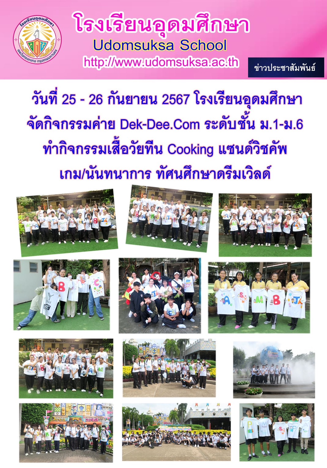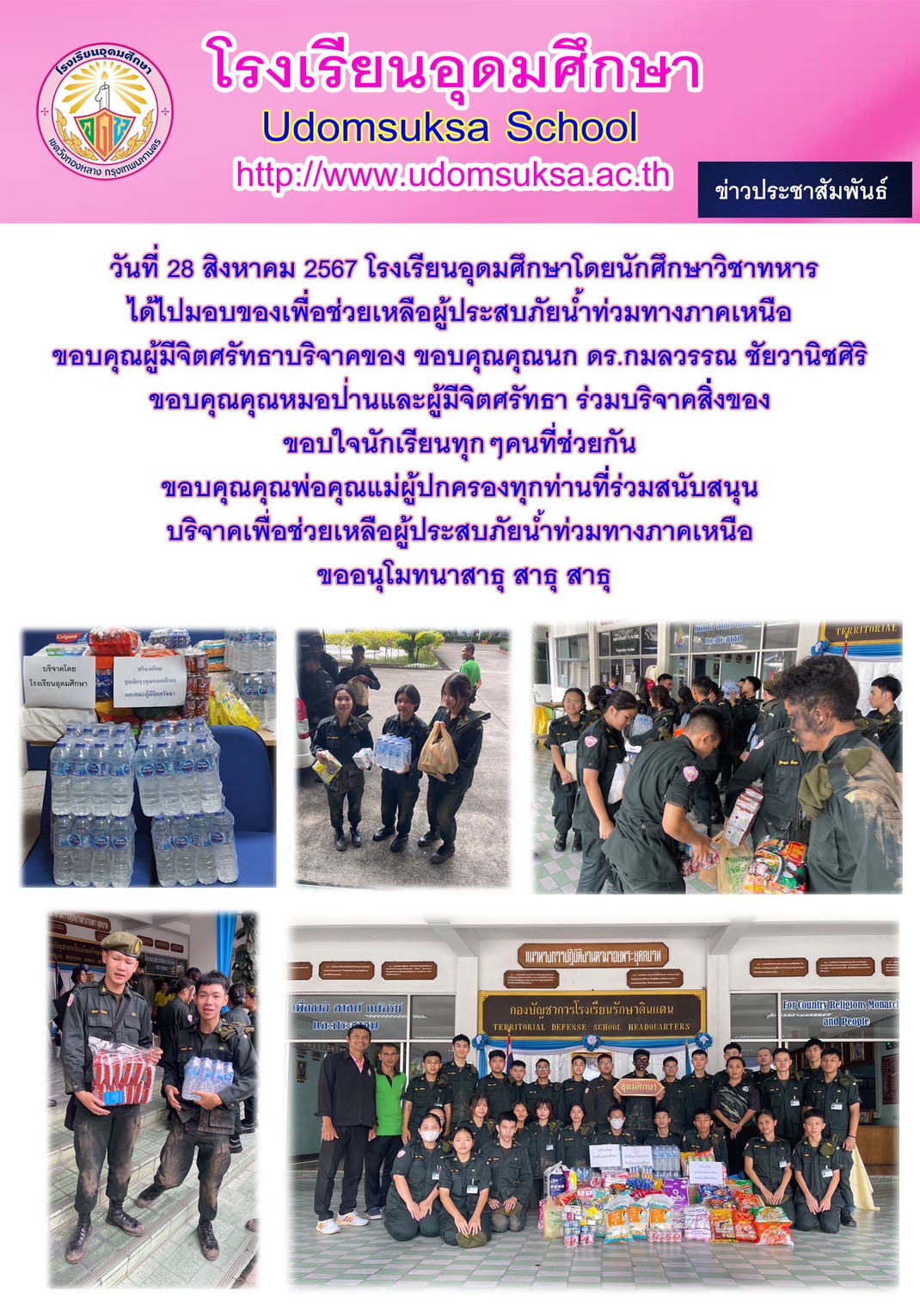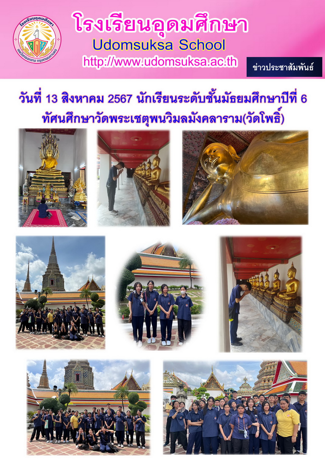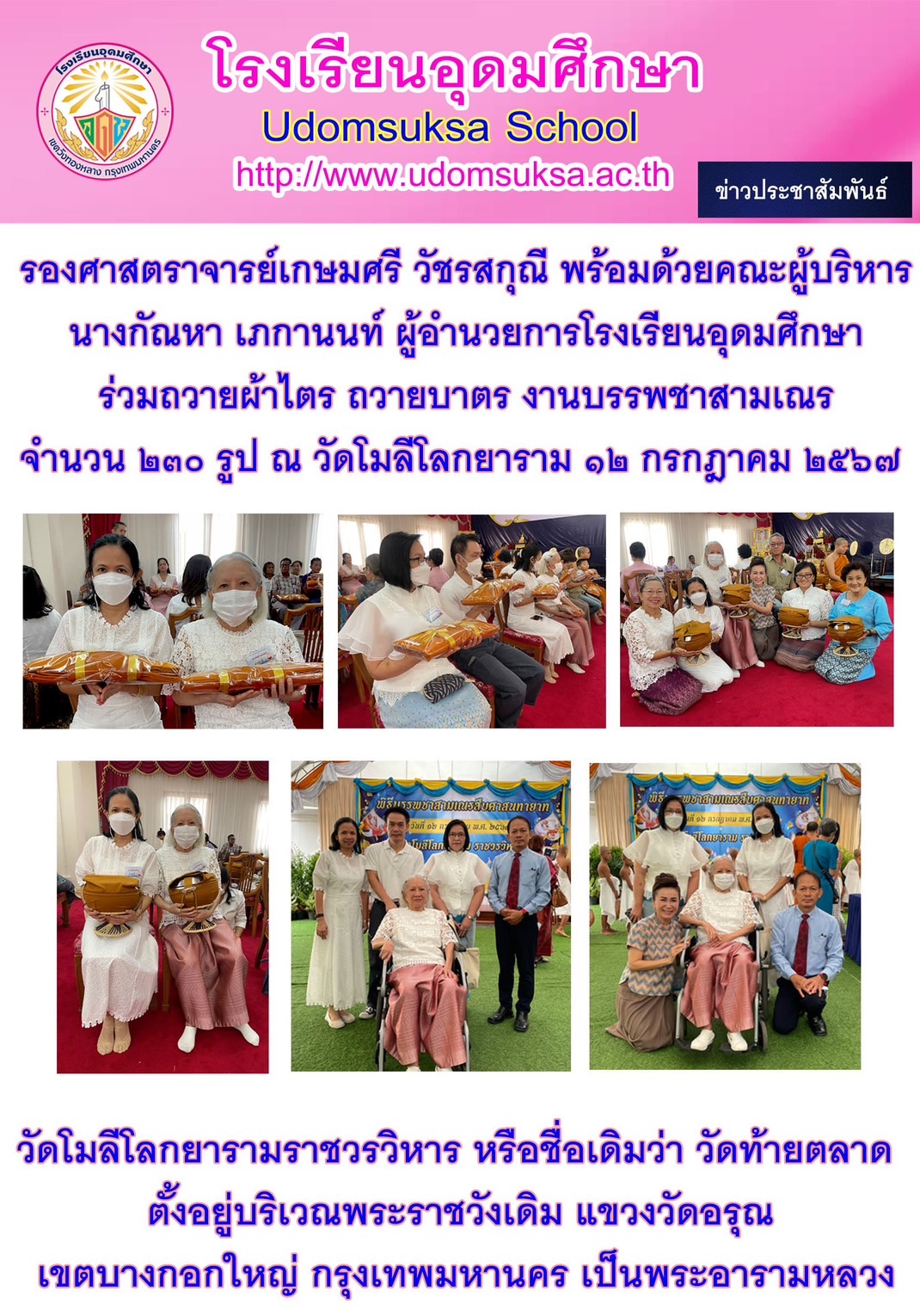 กิจกรรมประจำปีการศึกษา 2567 กิจกรรมกตัญญุตา ท่านอาจารย์อุดม วัชรสกุณี : 13 พ.ค. 68 ชมรมเต็มใจให้ บริจาคอุปกรณ์การเรียน ทุนการศึกษา ที่โรงเรียนบ้านเขาอีส้าน อ.ปากท่อ จ.ราชบุรี : 30 เม.ย. 68 สช. เข้าตรวจติดตามการใช้เงินอุดหนุน : 22 เม.ย. 68 กิจกรรมวันสงกรานต์ : 11 เม.ย. 68 หน่วยงานราชการ มาให้คำแนะนำด้านโภชนาการ : 13 ก.พ. 68 ทำบุญตักบาตรอาหารแห้งเนื่องในวันมาฆบูชา : 11 ก.พ. 68 นศท ชาย ชั้นปี 2 เข้าฝึกภาคสนามที่เขาชนไก่ : 7-9 ก.พ. 68 ค่ายลูกเสือ-เนตรนารีสามัญรุ่นใหญ่ : 4-6 ก.พ. 68 วันตรุษจีน : 27 ม.ค. 68 นศท ชาย ชั้นปี 3 เข้าฝึกภาคสนามที่เขาชนไก่ : 20-23 ม.ค. 68 นศท หญิง ชั้นปี 2 เข้าฝึกภาคสนามที่เขาชนไก่ : 18-20 ม.ค. 68 ร่วมงานวันพ่อขุนรามคำแหง : 17 ม.ค. 68 ลูกเสือ-เนตรนารี เรียนรู้การปฐมพยาบาล การทำ CPR : 15 ม.ค. 68 วันเด็กแห่งชาติ : 10 ม.ค. 68 วันเด็กแห่งชาติ : 10 ม.ค. 68 วันขึ้นปีใหม่ (มอบของขวัญแด่วินมอเตอร์ไซด์) : 26 ธ.ค. 67 วันขึ้นปีใหม่ (มอบของขวัญแด่ตำรวจจราจร) : 26 ธ.ค. 67 วันขึ้นปีใหม่ : 26 ธ.ค. 67 วันคริสต์มาส : 20 ธ.ค. 67 วันชาติและวันพ่อแห่งชาติ : 4 ธ.ค. 67 กีฬาสีอนุบาล : 29 พ.ย. 67 วันกีฬาสีประถม : 28 พ.ย. 67 วันกีฬาสีมัธยม : 27 พ.ย. 67 สอบธรรมะศึกษาชั้น ตรี โท เอก : 22 พ.ย. 67 วันลอยกระทง : 15 พ.ย. 67 นักเรียนป.6 ฉีดวัคซีนคอตีบ - บาดทะยัก (เข็มกระตุ้น) : 14 พ.ย. 67 วันปิยมหาราช : 23 ต.ค. 67 อบรมจริยธรรมครู : 8 ต.ค. 67 ค่ายระดับชั้นมัธยม : 25-26 ก.ย. 67 ค่ายระดับชั้นป.4-6 : 25-26 ก.ย. 67 ค่ายระดับชั้นป.1-3 : 23-24 ก.ย. 67 ค่ายระดับชั้นอนุบาล : 23-24 ก.ย. 67 นักศึกษาวิชาทหาร มอบสิ่งของช่วยผู้ประสบภัยน้ำท่วม : 28 ส.ค. 67 นักเรียนชั้นม.5 ทัศนศึกษา ณ Museum Siam : 22 ส.ค. 67 นักเรียนชั้นม.4 ทัศนศึกษา ณ Museum Siam : 20 ส.ค. 67 สัปดาห์วิทยาศาสตร์แห่งชาติ : 16 ส.ค. 67 สัปดาห์วิทยาศาสตร์แห่งชาติ : 16 ส.ค. 67 นักเรียนชั้นป.3 ทัศนศึกษา ณ พิพิธภัณฑ์ตราไปรษณียากร สามเสนใน : 14 ส.ค. 67 นักเรียนชั้นม.6 ทัศนศึกษา ณ วัดพระเชตุพนวิมลมังคลาราม (วัดโพธิ์) : 13 ส.ค. 67 นักเรียนชั้นม.3 ทัศนศึกษา ณ พิพิธภัณฑสถานแห่งชาติธรณีวิทยาเฉลิมพระเกียรติ : 9 ส.ค. 67 วันเฉลิมพระชนมพรรษา สมเด็จพระนางเจ้าสิริกิติ์ฯ ณ สำนักงานเขตวังทองหลาง : 8 ส.ค. 67 วันเฉลิมพระชนมพรรษา สมเด็จพระนางเจ้าสิริกิติ์ฯ : 8 ส.ค. 67 นักเรียนชั้นม.2 ทัศนศึกษา ณ พิพิธภัณฑ์พระราม ๙ : 7 ส.ค. 67 นักเรียนชั้นป.2 ทัศนศึกษา ณ อุทยานผีเสื้อและแมลง กรุงเทพมหานคร : 6 ส.ค. 67 นักเรียนชั้นป.4 ทัศนศึกษา ณ พิพิธภัณฑ์วิทยาศาสตร์ คลองห้า : 2 ส.ค. 67 นักเรียนชั้นป.6 ทัศนศึกษา ณ ศูนย์วิทยาศาสตร์เพื่อการศึกษา (ท้องฟ้าจำลอง กรุงเทพ) : 1 ส.ค. 67 นักเรียนชั้นม.1 ทัศนศึกษา ณ พิพิธภัณฑ์วิทยาศาสตร์ คลองห้า : 31 ก.ค. 67 นักเรียนชั้นป.1 ทัศนศึกษา ณ พิพิธภัณฑ์เด็กกรุงเทพมหานคร : 30 ก.ค. 67 วันภาษาไทยแห่งชาติ : 26 ก.ค. 67 วันเฉลิมพระชนมพร