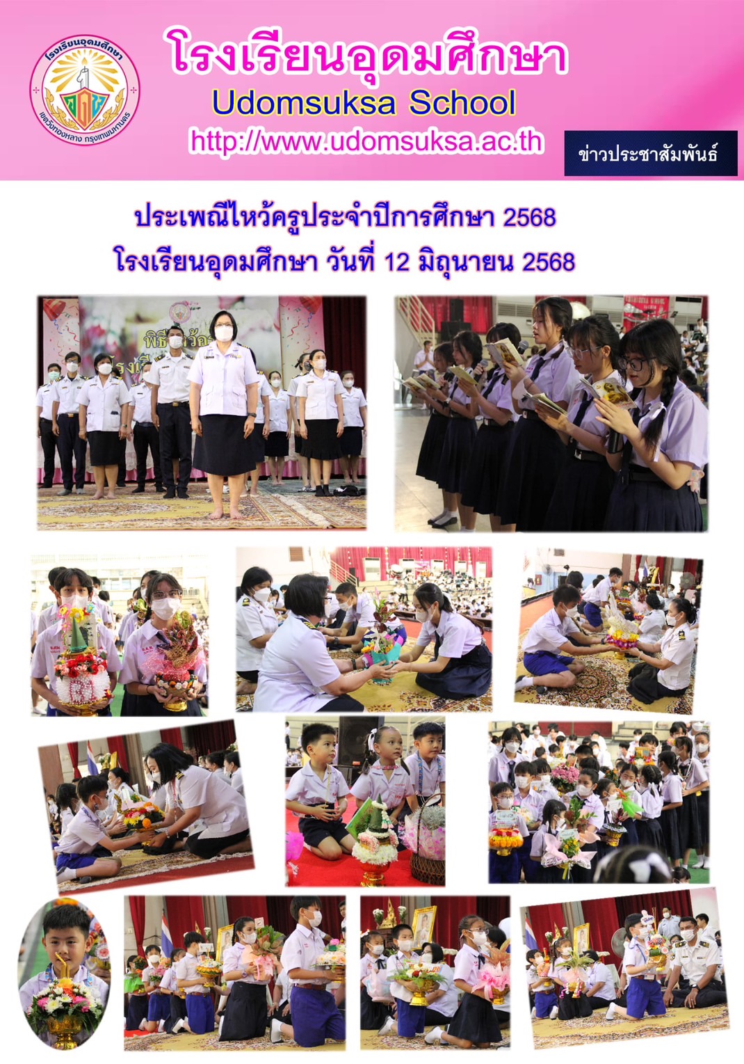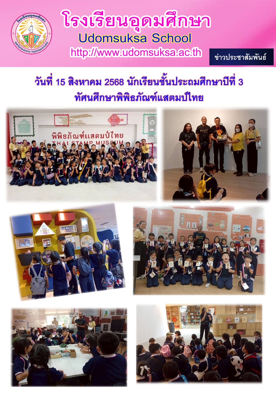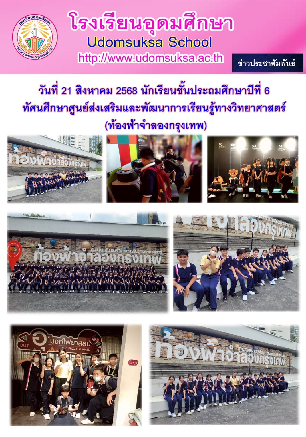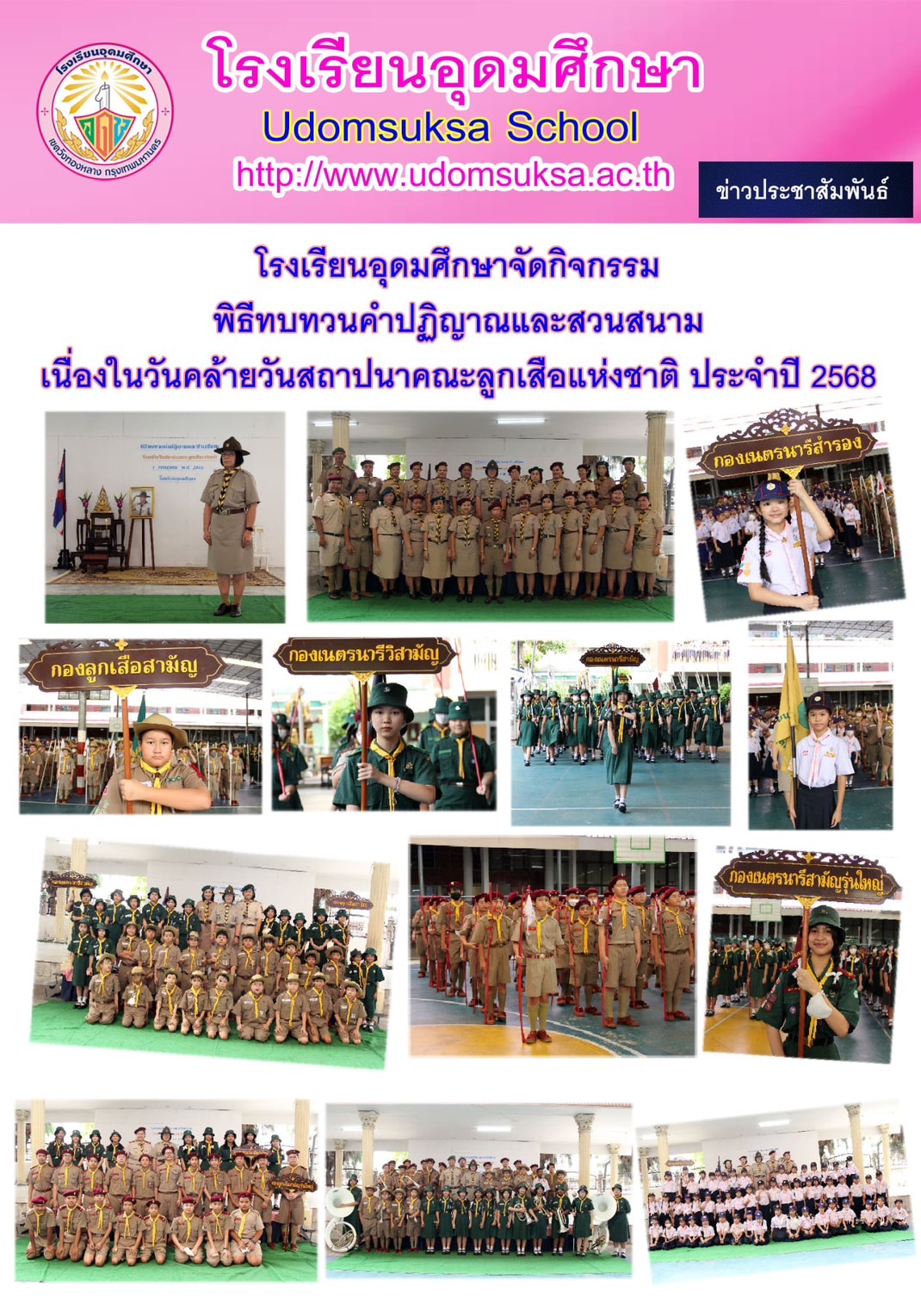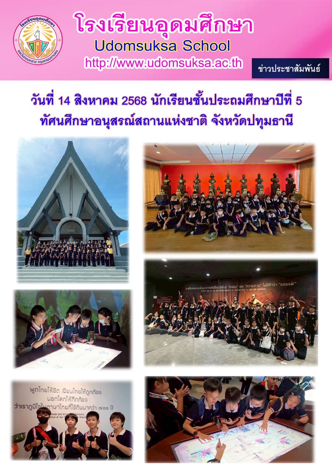กิจกรรมประจำปีการศึกษา 2568 นักเรียนชั้นอ.3 ทัศนศึกษา ณ อุทยานผีเสื้อและแมลง : 29 ส.ค. 68 นักเรียนชั้นม.6 ทัศนศึกษา ณ พิพิธภัณฑสถานแห่งชาติ พระนคร : 26 ส.ค. 68 นักเรียนชั้นม.3 ทัศนศึกษา ณ พิพิธภัณฑสถานแห่งชาติธรณีวิทยาเฉลิมพระเกียรติ : 26 ส.ค. 68 นักเรียนชั้นป.4 ทัศนศึกษา ณ พิพิธภัณฑ์วิทยาศาสตร์ คลองห้า : 22 ส.ค. 68 นักเรียนชั้นป.6 ทัศนศึกษา ณ ศูนย์ส่งเสริมและพัฒนาเรียนรู้ทางวิทยาศาสตร์ (ท้องฟ้าจำลอง กรุงเทพ) : 21 ส.ค. 68 นักเรียนชั้นป.2 ทัศนศึกษา ณ อุทยานผีเสื้อและแมลง กรุงเทพมหานคร : 20 ส.ค. 68 นักเรียนชั้นป.3 ทัศนศึกษา ณ พิพิธภัณฑ์สแตมป์ไทย : 15 ส.ค. 68 นักเรียนชั้นป.5 ทัศนศึกษา ณ อนุสรณ์สถานแห่งชาติ : 14 ส.ค. 68 นักเรียนชั้นม.1 ทัศนศึกษา ณ พิพิธภัณฑ์วิทยาศาสตร์ คลองห้า : 13 ส.ค. 68 วันเฉลิมพระชนมพรรษา สมเด็จพระนางเจ้าสิริกิติ์ฯ : 8 ส.ค. 68 นักเรียนชั้นม.2 ทัศนศึกษา ณ พิพิธภัณฑ์พระราม ๙ : 6 ส.ค. 68 นักเรียนชั้นม.5 ทัศนศึกษา ณ ศูนย์การเรียนรู้ กฟผ. สำนักงานกลาง : 5 ส.ค. 68 วันตรวจสุขภาพประจำปีระดับอนุบาล : 5 ส.ค. 68 วันภาษาไทยแห่งชาติ : 25 ก.ค. 68 วันเฉลิมพระชนมพรรษา รัชกาลที่ 10 ณ สำนักงานเขตวังทองหลาง : 25 ก.ค. 68 วันเฉลิมพระชนมพรรษา รัชกาลที่ 10 : 25 ก.ค. 68 นักศึกษาวิชาทหารร่วมกิจกรรม "เราทำความดี ด้วยหัวใจ" : 16 ก.ค. 68 วันอาสาฬหบูชาและวันเข้าพรรษา ณ วัดสามัคคีธรรม : 9 ก.ค. 68 วันอาสาฬหบูชาและวันเข้าพรรษา ณ วัดพระราม 9 กาญจนาภิเษก : 8 ก.ค. 68 วันอาสาฬหบูชาและวันเข้าพรรษา ณ วัดเทพลีลา : 8 ก.ค. 68 วันอาสาฬหบูชาและวันเข้าพรรษา : 8 ก.ค. 68 วันสถาปนาลูกเสือไทย : 1 ก.ค. 68 วันสุนทรภู่ : 26 มิ.ย. 68 วันต่อต้านยาเสพติดโลก : 26 มิ.ย. 68 ประชุมคณะกรรมการบริหารโรงเรียน : 18 มิ.ย. 68 วันไหว้ครู : 12 มิ.ย. 68 วันเฉลิมพระชนมพรรษา สมเด็จพระนางเจ้าพระบรมราชินี ณ สำนักงานเขตวังทองหลาง: 30 พ.ค. 68 วันเฉลิมพระชนมพรรษา สมเด็จพระนางเจ้าพระบรมราชินี : 30 พ.ค. 68 ค่ายพุทธบุตร : 29-30 พ.ค. 68