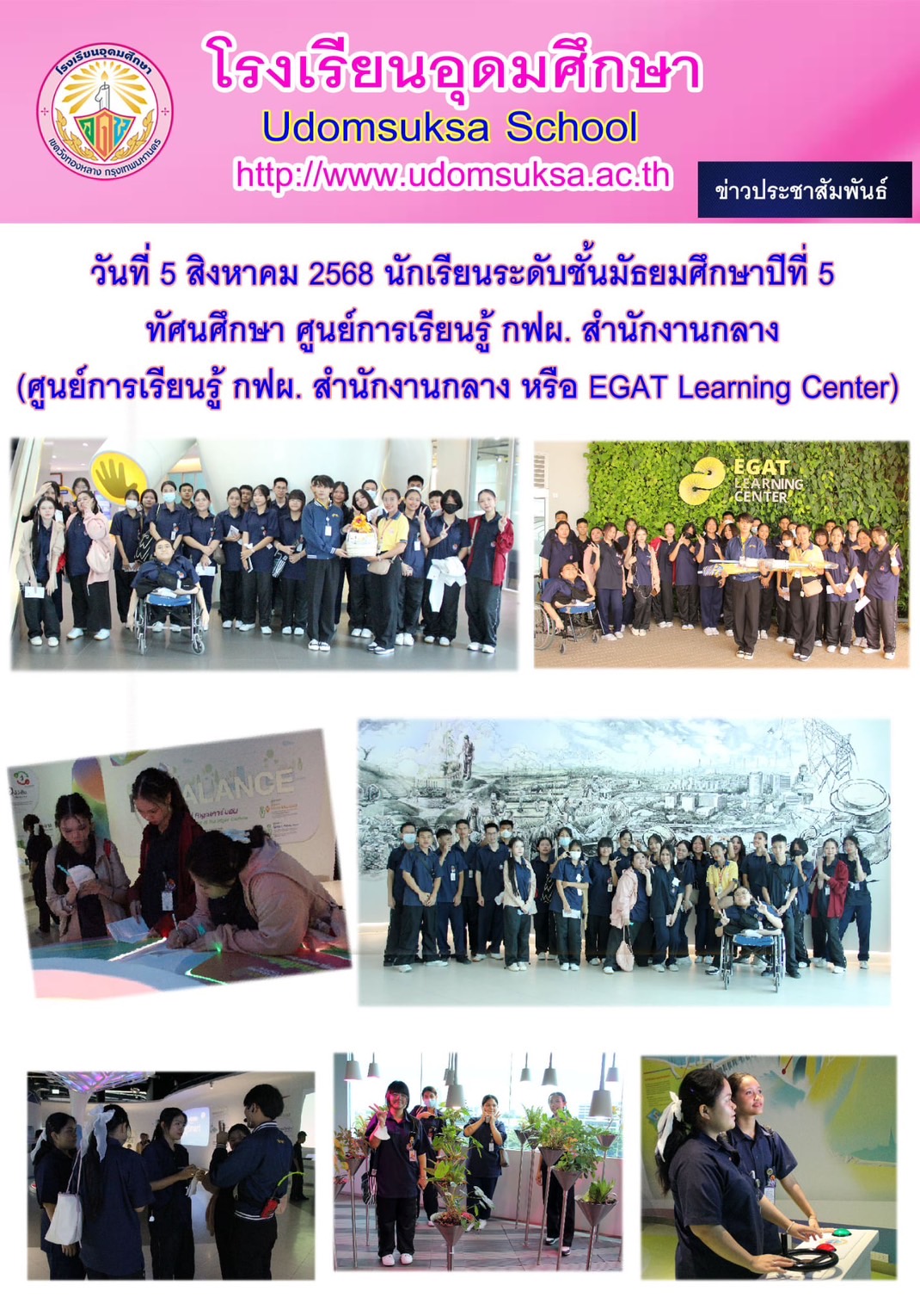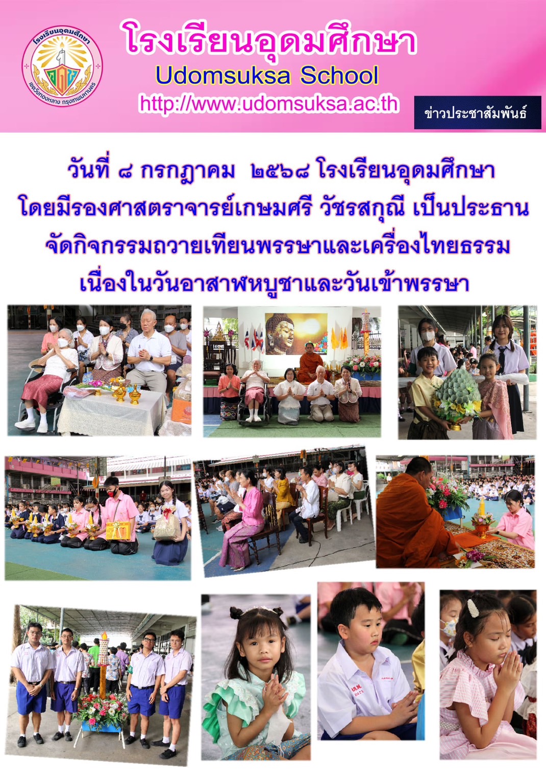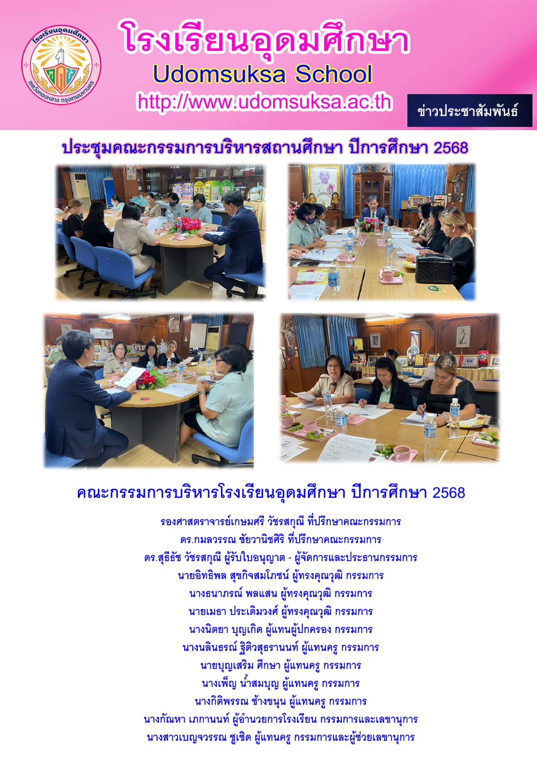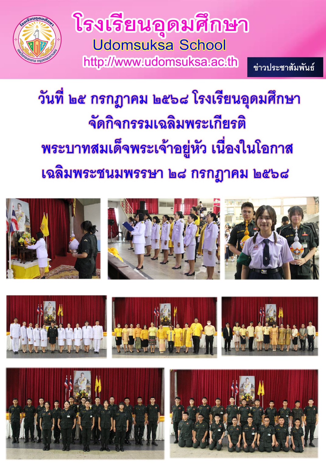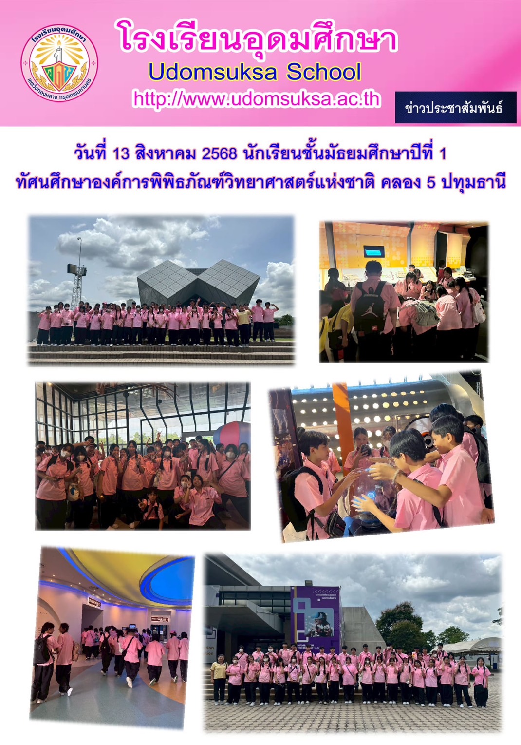 กิจกรรมประจำปีการศึกษา 2568 นักเรียนชั้นอ.3 ทัศนศึกษา ณ อุทยานผีเสื้อและแมลง : 29 ส.ค. 68 นักเรียนชั้นม.6 ทัศนศึกษา ณ พิพิธภัณฑสถานแห่งชาติ พระนคร : 26 ส.ค. 68 นักเรียนชั้นม.3 ทัศนศึกษา ณ พิพิธภัณฑสถานแห่งชาติธรณีวิทยาเฉลิมพระเกียรติ : 26 ส.ค. 68 นักเรียนชั้นป.4 ทัศนศึกษา ณ พิพิธภัณฑ์วิทยาศาสตร์ คลองห้า : 22 ส.ค. 68 นักเรียนชั้นป.6 ทัศนศึกษา ณ ศูนย์ส่งเสริมและพัฒนาเรียนรู้ทางวิทยาศาสตร์ (ท้องฟ้าจำลอง กรุงเทพ) : 21 ส.ค. 68 นักเรียนชั้นป.2 ทัศนศึกษา ณ อุทยานผีเสื้อและแมลง กรุงเทพมหานคร : 20 ส.ค. 68 นักเรียนชั้นป.3 ทัศนศึกษา ณ พิพิธภัณฑ์สแตมป์ไทย : 15 ส.ค. 68 นักเรียนชั้นป.5 ทัศนศึกษา ณ อนุสรณ์สถานแห่งชาติ : 14 ส.ค. 68 นักเรียนชั้นม.1 ทัศนศึกษา ณ พิพิธภัณฑ์วิทยาศาสตร์ คลองห้า : 13 ส.ค. 68 วันเฉลิมพระชนมพรรษา สมเด็จพระนางเจ้าสิริกิติ์ฯ : 8 ส.ค. 68 นักเรียนชั้นม.2 ทัศนศึกษา ณ พิพิธภัณฑ์พระราม ๙ : 6 ส.ค. 68 นักเรียนชั้นม.5 ทัศนศึกษา ณ ศูนย์การเรียนรู้ กฟผ. สำนักงานกลาง : 5 ส.ค. 68 วันตรวจสุขภาพประจำปีระดับอนุบาล : 5 ส.ค. 68 วันภาษาไทยแห่งชาติ : 25 ก.ค. 68 วันเฉลิมพระชนมพรรษา รัชกาลที่ 10 ณ สำนักงานเขตวังทองหลาง : 25 ก.ค. 68 วันเฉลิมพระชนมพรรษา รัชกาลที่ 10 : 25 ก.ค. 68 นักศึกษาวิชาทหารร่วมกิจกรรม "เราทำความดี ด้วยหัวใจ" : 16 ก.ค. 68 วันอาสาฬหบูชาและวันเข้าพรรษา ณ วัดสามัคคีธรรม : 9 ก.ค. 68 วันอาสาฬหบูชาและวันเข้าพรรษา ณ วัดพระราม 9 กาญจนาภิเษก : 8 ก.ค. 68 วันอาสาฬหบูชาและวันเข้าพรรษา ณ วัดเทพลีลา : 8 ก.ค. 68 วันอาสาฬหบูชาและวันเข้าพรรษา : 8 ก.ค. 68 วันสถาปนาลูกเสือไทย : 1 ก.ค. 68 วันสุนทรภู่ : 26 มิ.ย. 68 วันต่อต้านยาเสพติดโลก : 26 มิ.ย. 68 ประชุมคณะกรรมการบริหารโรงเรียน : 18 มิ.ย. 68 วันไหว้ครู : 12 มิ.ย. 68 วันเฉลิมพระชนมพรรษา สมเด็จพระนางเจ้าพระบรมราชินี ณ สำนักงานเขตวังทองหลาง: 30 พ.ค. 68 วันเฉลิมพระชนมพรรษา สมเด็จพระนางเจ้าพระบรมราชินี : 30 พ.ค. 68 ค่ายพุทธบุตร : 29-30 พ.ค. 68
