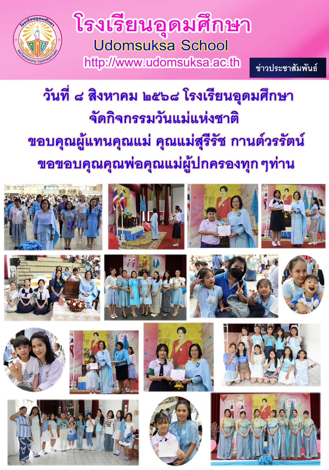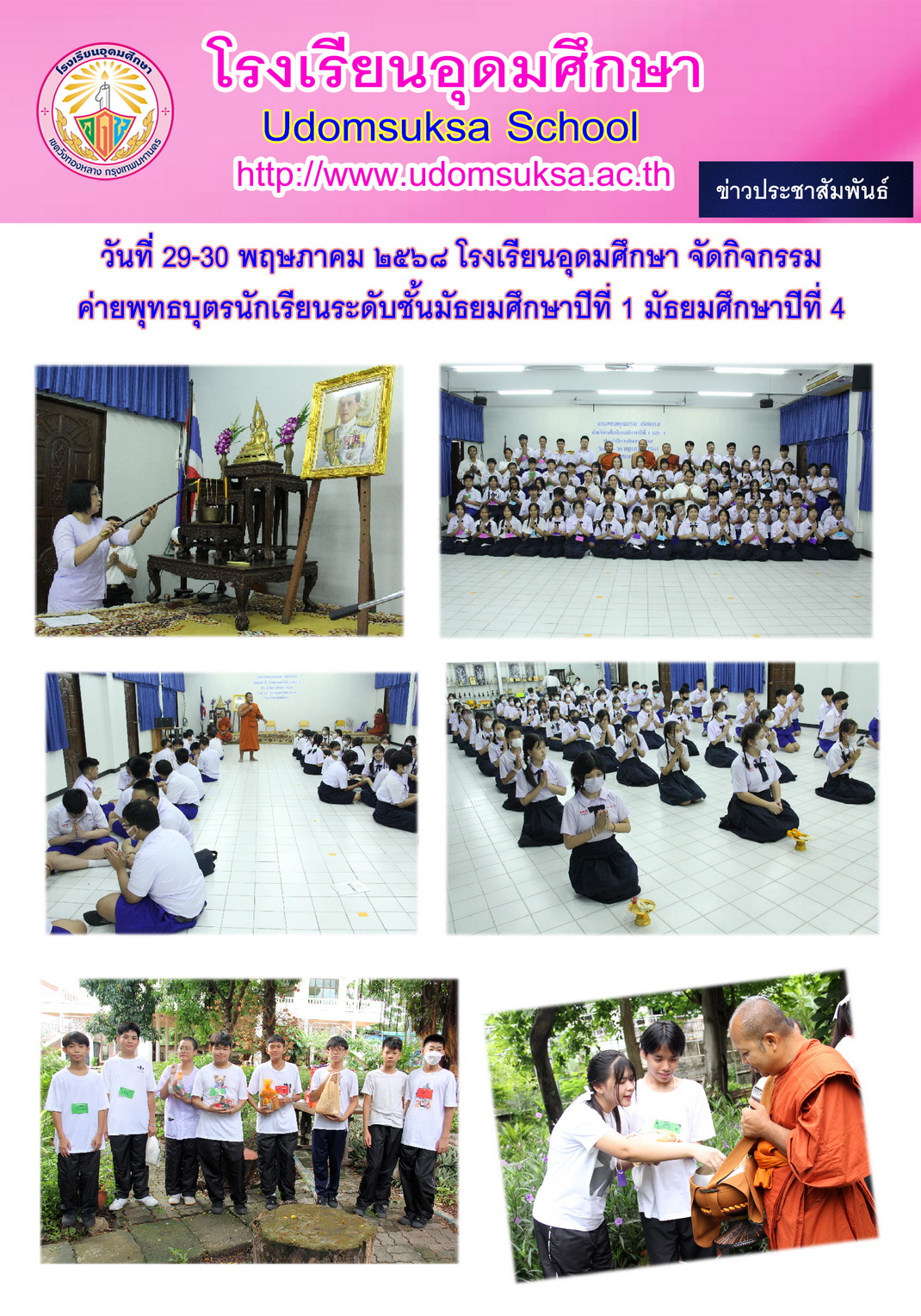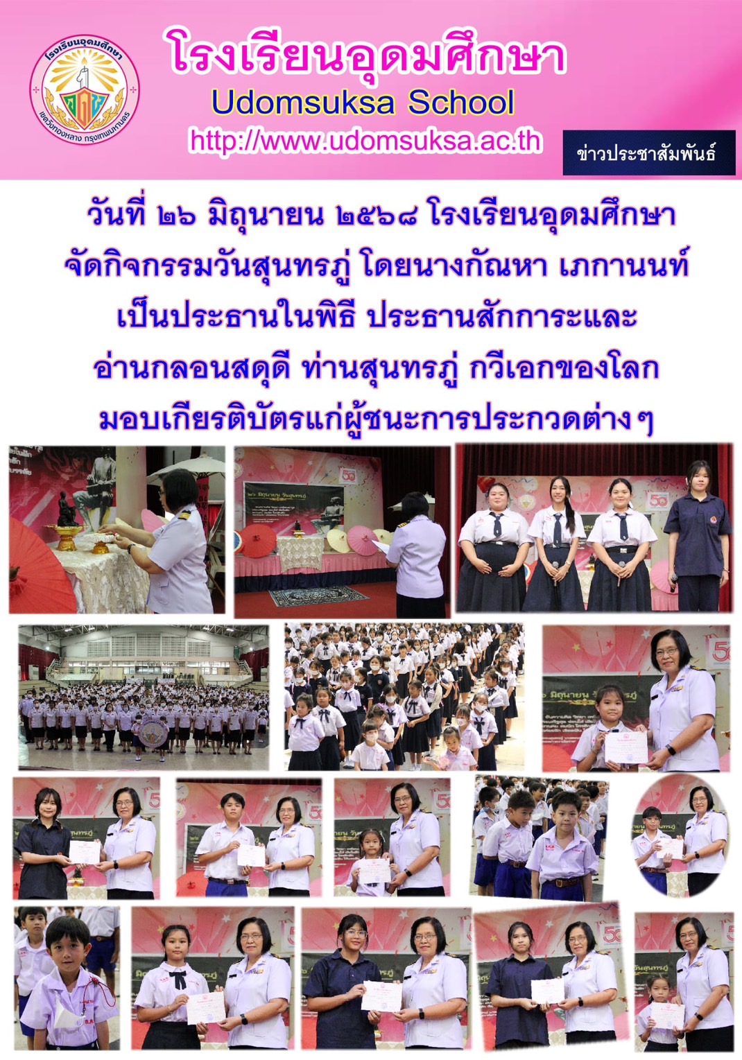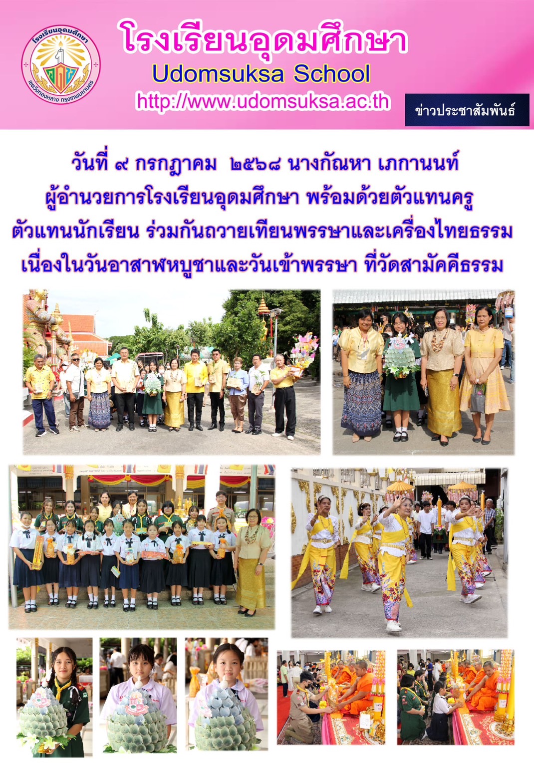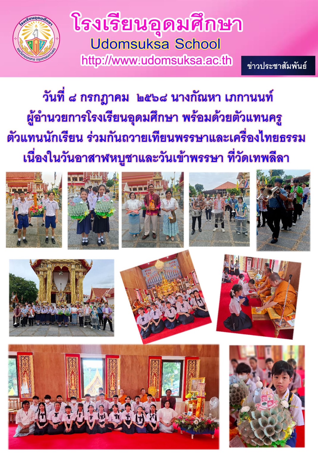 กิจกรรมประจำปีการศึกษา 2568 นักเรียนชั้นอ.3 ทัศนศึกษา ณ อุทยานผีเสื้อและแมลง : 29 ส.ค. 68 นักเรียนชั้นม.6 ทัศนศึกษา ณ พิพิธภัณฑสถานแห่งชาติ พระนคร : 26 ส.ค. 68 นักเรียนชั้นม.3 ทัศนศึกษา ณ พิพิธภัณฑสถานแห่งชาติธรณีวิทยาเฉลิมพระเกียรติ : 26 ส.ค. 68 นักเรียนชั้นป.4 ทัศนศึกษา ณ พิพิธภัณฑ์วิทยาศาสตร์ คลองห้า : 22 ส.ค. 68 นักเรียนชั้นป.6 ทัศนศึกษา ณ ศูนย์ส่งเสริมและพัฒนาเรียนรู้ทางวิทยาศาสตร์ (ท้องฟ้าจำลอง กรุงเทพ) : 21 ส.ค. 68 นักเรียนชั้นป.2 ทัศนศึกษา ณ อุทยานผีเสื้อและแมลง กรุงเทพมหานคร : 20 ส.ค. 68 นักเรียนชั้นป.3 ทัศนศึกษา ณ พิพิธภัณฑ์สแตมป์ไทย : 15 ส.ค. 68 นักเรียนชั้นป.5 ทัศนศึกษา ณ อนุสรณ์สถานแห่งชาติ : 14 ส.ค. 68 นักเรียนชั้นม.1 ทัศนศึกษา ณ พิพิธภัณฑ์วิทยาศาสตร์ คลองห้า : 13 ส.ค. 68 วันเฉลิมพระชนมพรรษา สมเด็จพระนางเจ้าสิริกิติ์ฯ : 8 ส.ค. 68 นักเรียนชั้นม.2 ทัศนศึกษา ณ พิพิธภัณฑ์พระราม ๙ : 6 ส.ค. 68 นักเรียนชั้นม.5 ทัศนศึกษา ณ ศูนย์การเรียนรู้ กฟผ. สำนักงานกลาง : 5 ส.ค. 68 วันตรวจสุขภาพประจำปีระดับอนุบาล : 5 ส.ค. 68 วันภาษาไทยแห่งชาติ : 25 ก.ค. 68 วันเฉลิมพระชนมพรรษา รัชกาลที่ 10 ณ สำนักงานเขตวังทองหลาง : 25 ก.ค. 68 วันเฉลิมพระชนมพรรษา รัชกาลที่ 10 : 25 ก.ค. 68 นักศึกษาวิชาทหารร่วมกิจกรรม "เราทำความดี ด้วยหัวใจ" : 16 ก.ค. 68 วันอาสาฬหบูชาและวันเข้าพรรษา ณ วัดสามัคคีธรรม : 9 ก.ค. 68 วันอาสาฬหบูชาและวันเข้าพรรษา ณ วัดพระราม 9 กาญจนาภิเษก : 8 ก.ค. 68 วันอาสาฬหบูชาและวันเข้าพรรษา ณ วัดเทพลีลา : 8 ก.ค. 68 วันอาสาฬหบูชาและวันเข้าพรรษา : 8 ก.ค. 68 วันสถาปนาลูกเสือไทย : 1 ก.ค. 68 วันสุนทรภู่ : 26 มิ.ย. 68 วันต่อต้านยาเสพติดโลก : 26 มิ.ย. 68 ประชุมคณะกรรมการบริหารโรงเรียน : 18 มิ.ย. 68 วันไหว้ครู : 12 มิ.ย. 68 วันเฉลิมพระชนมพรรษา สมเด็จพระนางเจ้าพระบรมราชินี ณ สำนักงานเขตวังทองหลาง: 30 พ.ค. 68 วันเฉลิมพระชนมพรรษา สมเด็จพระนางเจ้าพระบรมราชินี : 30 พ.ค. 68 ค่ายพุทธบุตร : 29-30 พ.ค. 68