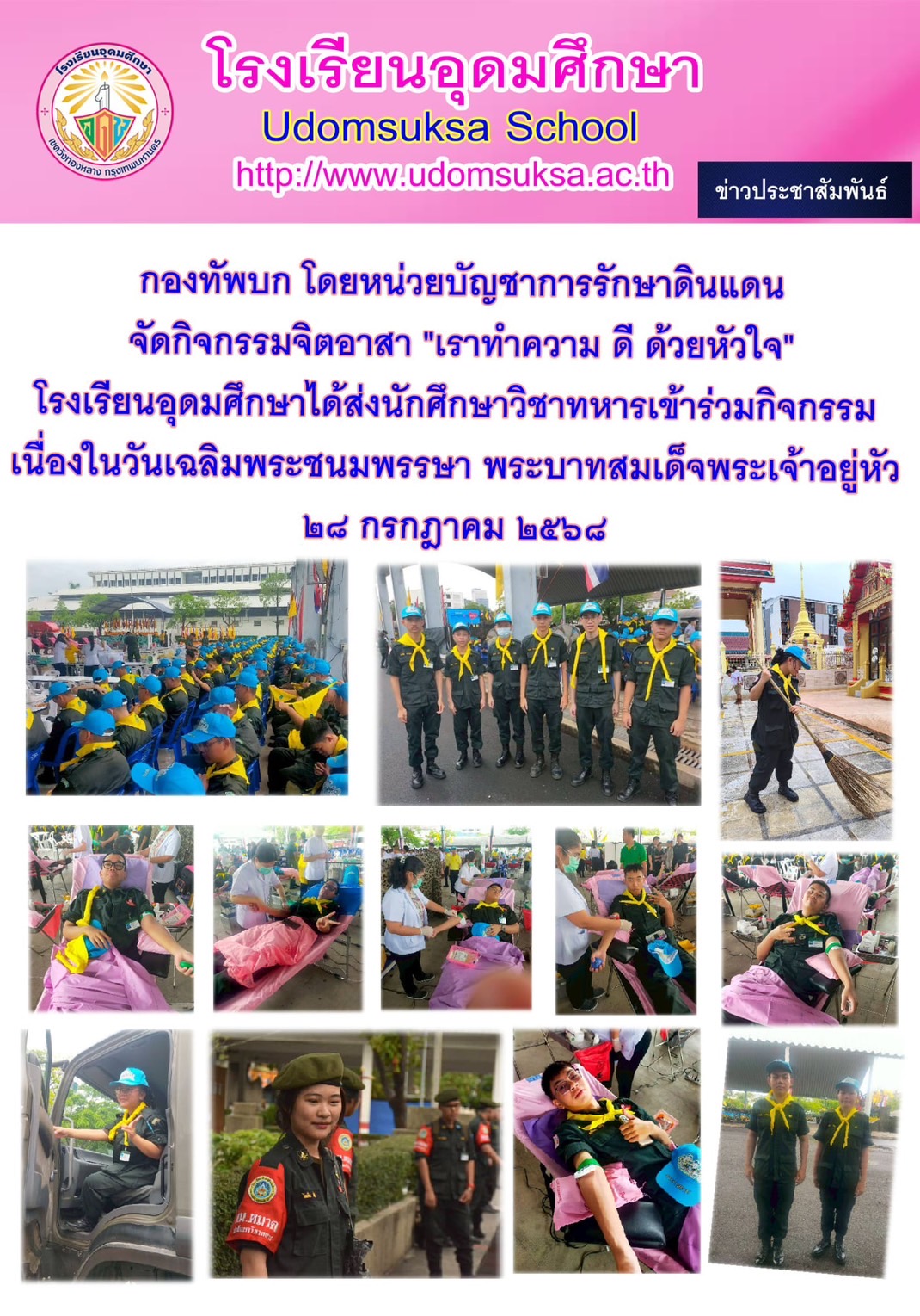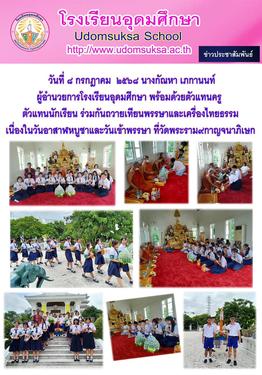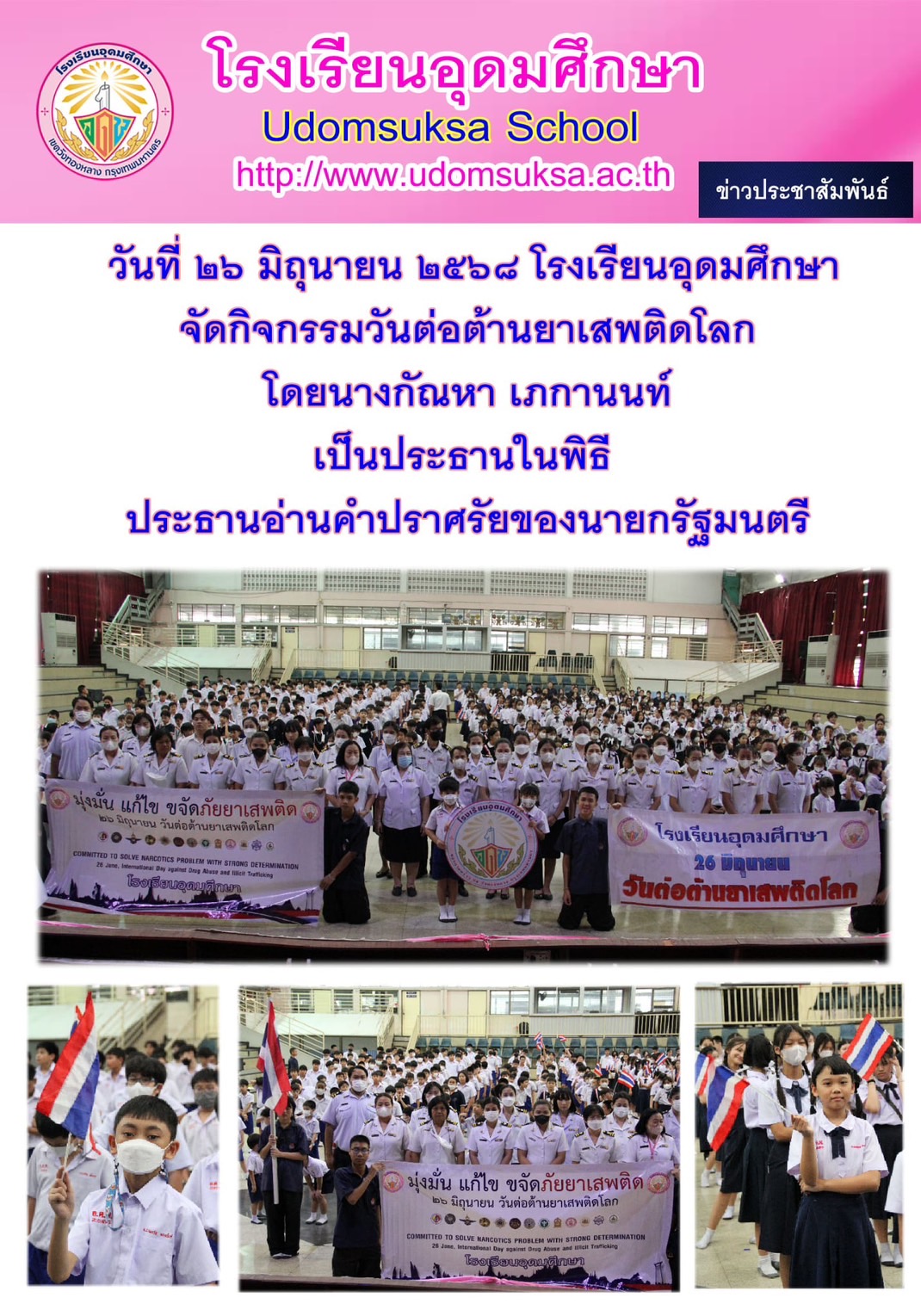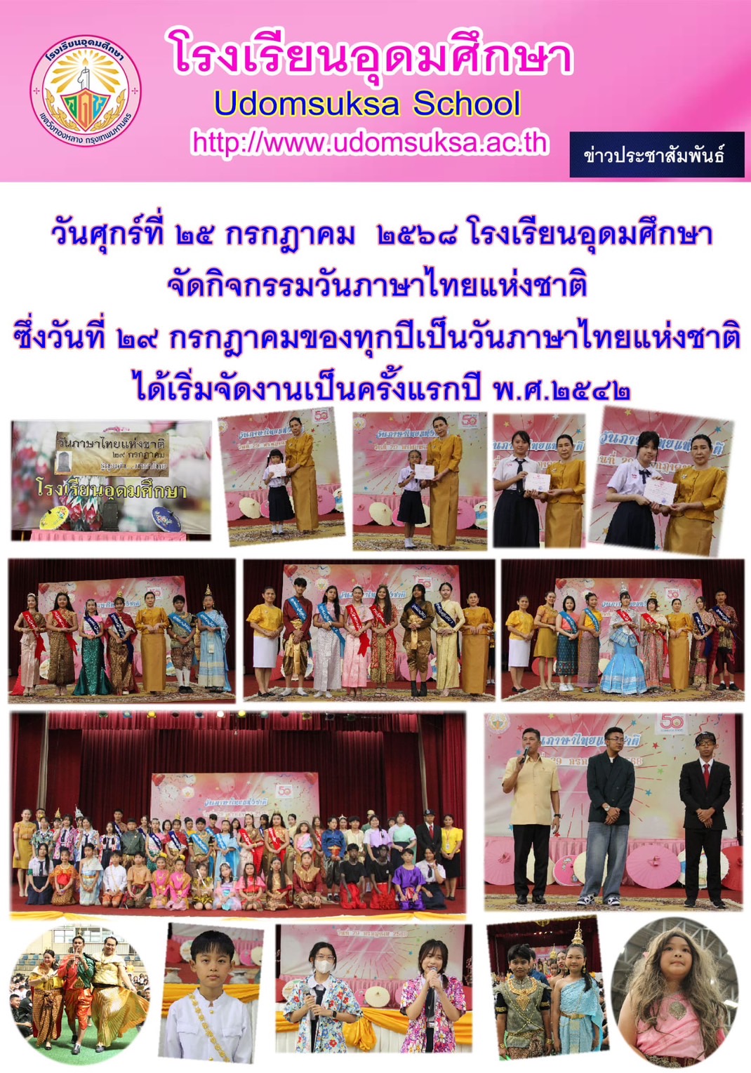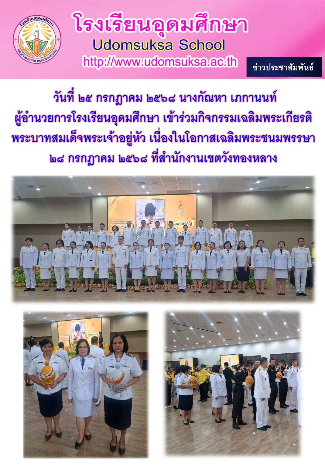 กิจกรรมประจำปีการศึกษา 2568 นักเรียนชั้นอ.3 ทัศนศึกษา ณ อุทยานผีเสื้อและแมลง : 29 ส.ค. 68 นักเรียนชั้นม.6 ทัศนศึกษา ณ พิพิธภัณฑสถานแห่งชาติ พระนคร : 26 ส.ค. 68 นักเรียนชั้นม.3 ทัศนศึกษา ณ พิพิธภัณฑสถานแห่งชาติธรณีวิทยาเฉลิมพระเกียรติ : 26 ส.ค. 68 นักเรียนชั้นป.4 ทัศนศึกษา ณ พิพิธภัณฑ์วิทยาศาสตร์ คลองห้า : 22 ส.ค. 68 นักเรียนชั้นป.6 ทัศนศึกษา ณ ศูนย์ส่งเสริมและพัฒนาเรียนรู้ทางวิทยาศาสตร์ (ท้องฟ้าจำลอง กรุงเทพ) : 21 ส.ค. 68 นักเรียนชั้นป.2 ทัศนศึกษา ณ อุทยานผีเสื้อและแมลง กรุงเทพมหานคร : 20 ส.ค. 68 นักเรียนชั้นป.3 ทัศนศึกษา ณ พิพิธภัณฑ์สแตมป์ไทย : 15 ส.ค. 68 นักเรียนชั้นป.5 ทัศนศึกษา ณ อนุสรณ์สถานแห่งชาติ : 14 ส.ค. 68 นักเรียนชั้นม.1 ทัศนศึกษา ณ พิพิธภัณฑ์วิทยาศาสตร์ คลองห้า : 13 ส.ค. 68 วันเฉลิมพระชนมพรรษา สมเด็จพระนางเจ้าสิริกิติ์ฯ : 8 ส.ค. 68 นักเรียนชั้นม.2 ทัศนศึกษา ณ พิพิธภัณฑ์พระราม ๙ : 6 ส.ค. 68 นักเรียนชั้นม.5 ทัศนศึกษา ณ ศูนย์การเรียนรู้ กฟผ. สำนักงานกลาง : 5 ส.ค. 68 วันตรวจสุขภาพประจำปีระดับอนุบาล : 5 ส.ค. 68 วันภาษาไทยแห่งชาติ : 25 ก.ค. 68 วันเฉลิมพระชนมพรรษา รัชกาลที่ 10 ณ สำนักงานเขตวังทองหลาง : 25 ก.ค. 68 วันเฉลิมพระชนมพรรษา รัชกาลที่ 10 : 25 ก.ค. 68 นักศึกษาวิชาทหารร่วมกิจกรรม "เราทำความดี ด้วยหัวใจ" : 16 ก.ค. 68 วันอาสาฬหบูชาและวันเข้าพรรษา ณ วัดสามัคคีธรรม : 9 ก.ค. 68 วันอาสาฬหบูชาและวันเข้าพรรษา ณ วัดพระราม 9 กาญจนาภิเษก : 8 ก.ค. 68 วันอาสาฬหบูชาและวันเข้าพรรษา ณ วัดเทพลีลา : 8 ก.ค. 68 วันอาสาฬหบูชาและวันเข้าพรรษา : 8 ก.ค. 68 วันสถาปนาลูกเสือไทย : 1 ก.ค. 68 วันสุนทรภู่ : 26 มิ.ย. 68 วันต่อต้านยาเสพติดโลก : 26 มิ.ย. 68 ประชุมคณะกรรมการบริหารโรงเรียน : 18 มิ.ย. 68 วันไหว้ครู : 12 มิ.ย. 68 วันเฉลิมพระชนมพรรษา สมเด็จพระนางเจ้าพระบรมราชินี ณ สำนักงานเขตวังทองหลาง: 30 พ.ค. 68 วันเฉลิมพระชนมพรรษา สมเด็จพระนางเจ้าพระบรมราชินี : 30 พ.ค. 68 ค่ายพุทธบุตร : 29-30 พ.ค. 68