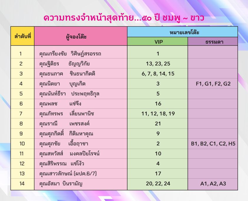 รายชื่อโต๊ะโซนหน้าสนามบาส