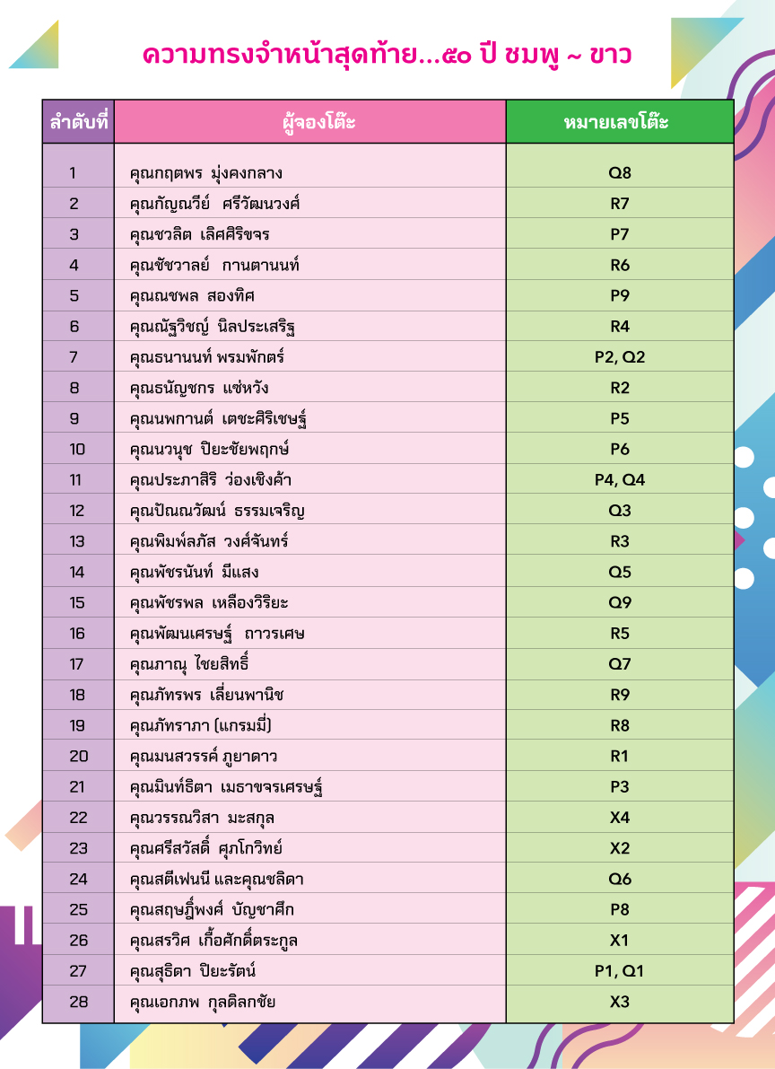 "ความทรงจำหน้าสุดท้าย... ๕๐ ปี ชมพู-ขาว"